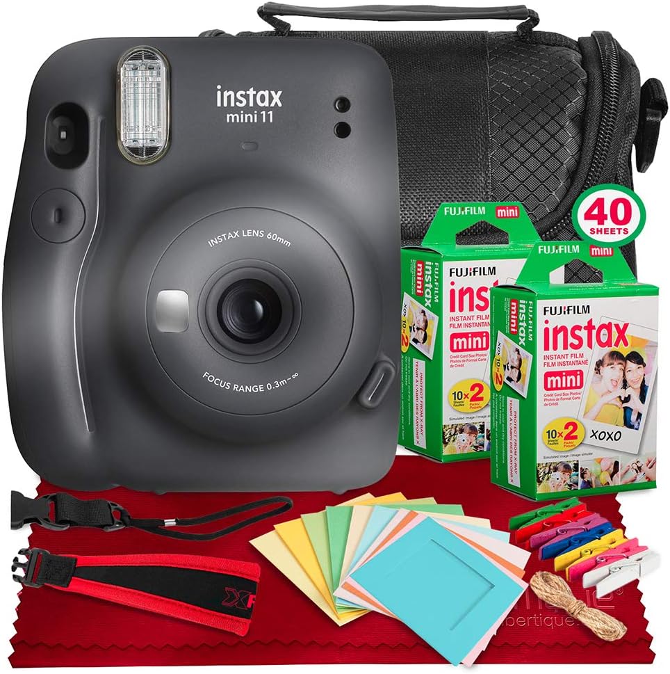 Affiliate reviews FUJIFILM INSTAX Mini 11 Instant Film Camera (Charcoal Grey) + 2x Fujifilm Instax Mini Twin Film (40 Exposures), Camera Carrying Case, Xpix Camera Strap & Funky Film Frames